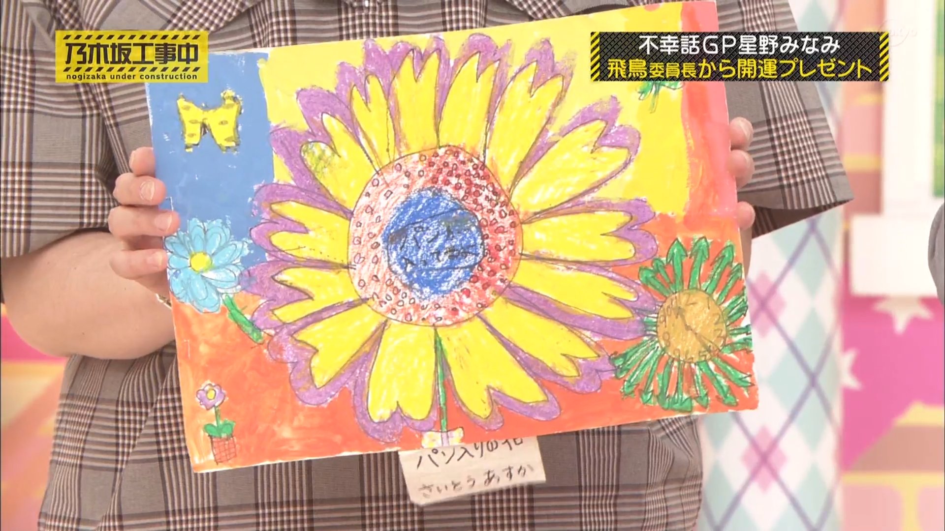 グランプリ: 星野みなみが選ばれ、齋藤飛鳥が小学生の頃に描いた**「パン入りの花」の絵**がプレゼントされました。この絵は、「よく眠れるし、鼻水も止まる」効果があると説明されました。