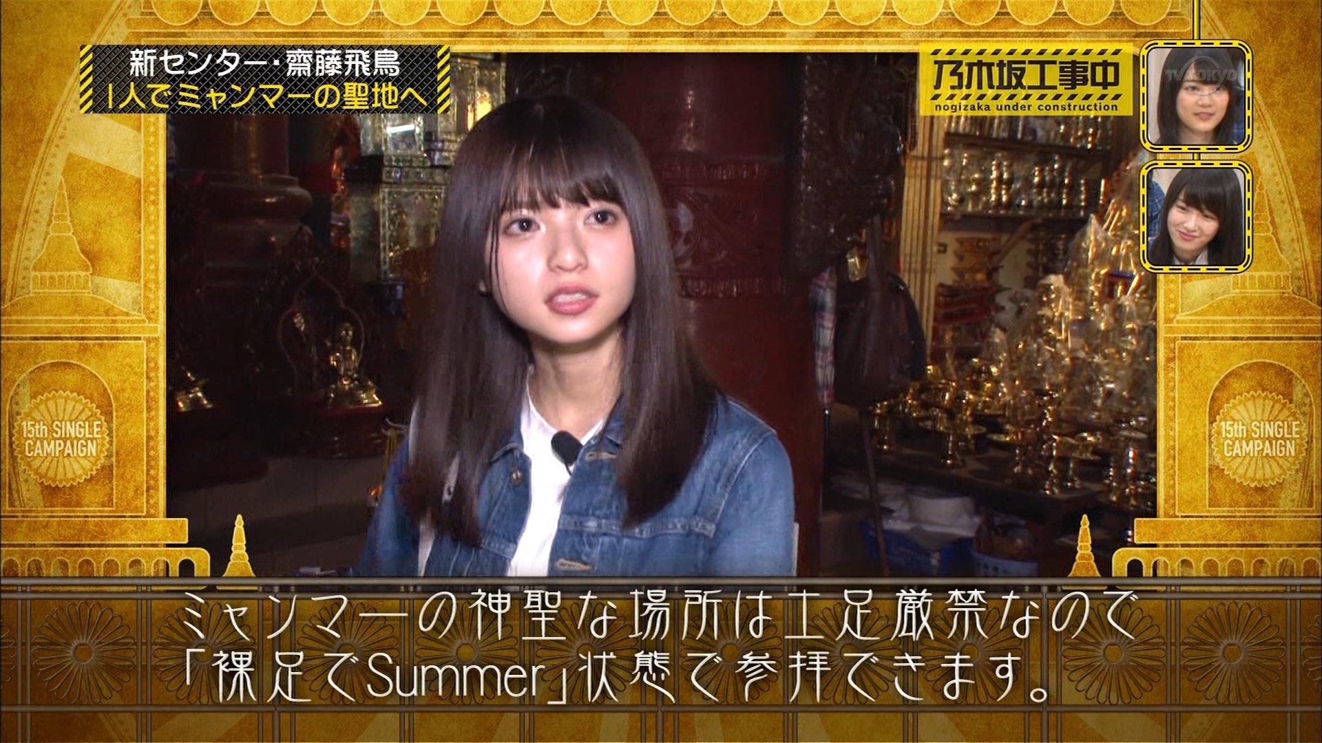 新センターである齋藤飛鳥さんが1人でミャンマーを訪れ、15thシングルのヒット祈願を行う企画が放送されました。ミャンマーは齋藤さんのお母さんの故郷であり、今回の旅は「自立への決意の旅」とも位置づけられました。
