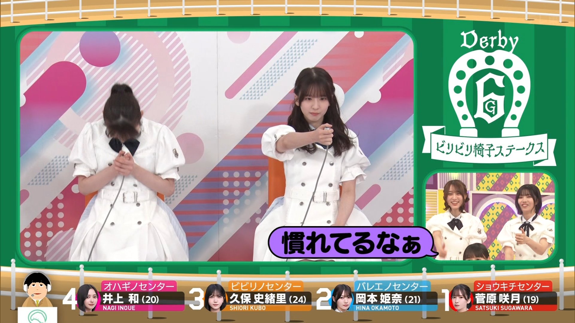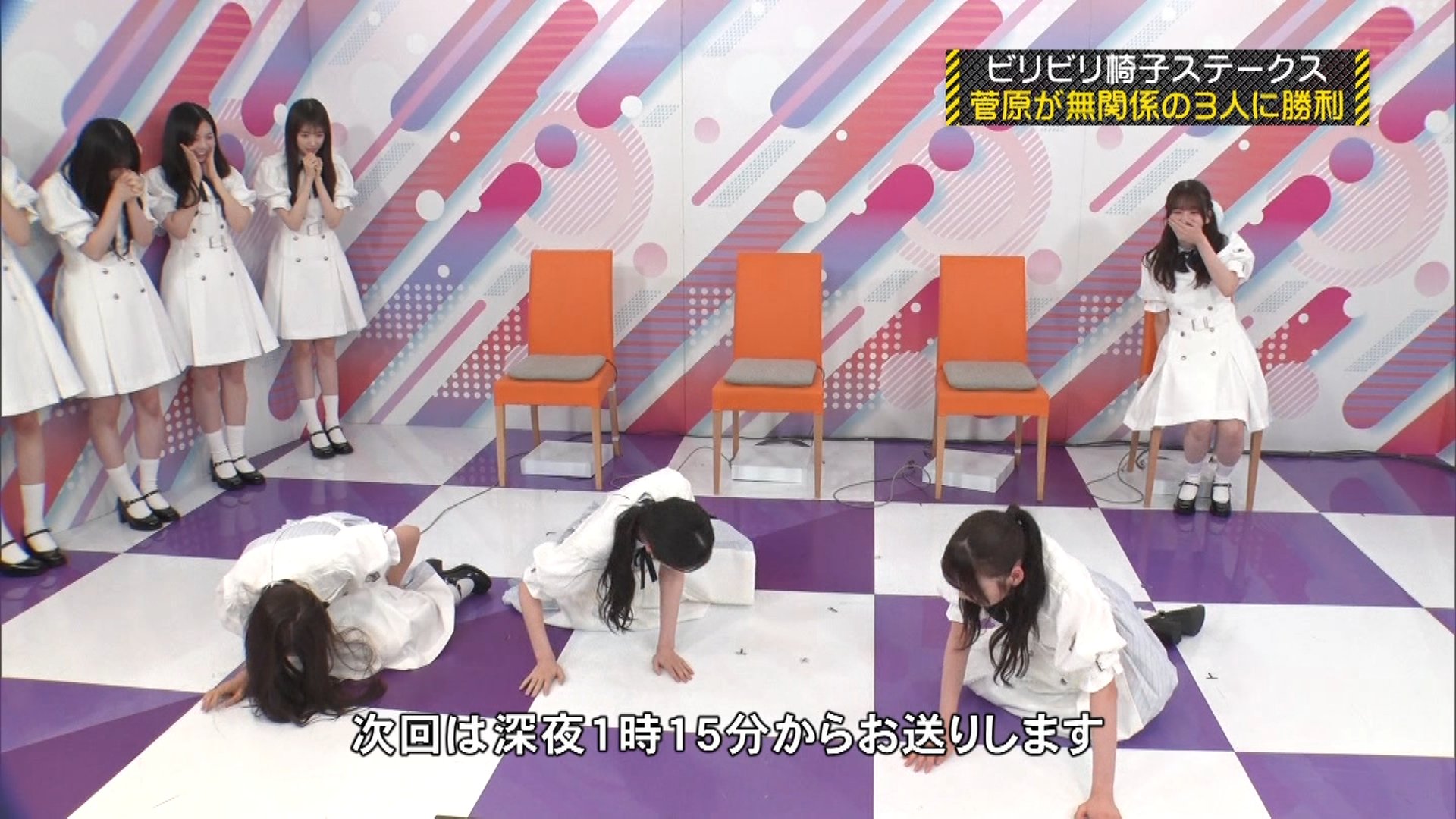 内容: 6期生4人がスイッチを持ち、音楽が止まったら一番早く押した人以外が電流を食らうという、反射神経を競うゲームです。このレースは2ポイントが得られる重要なレースでした。