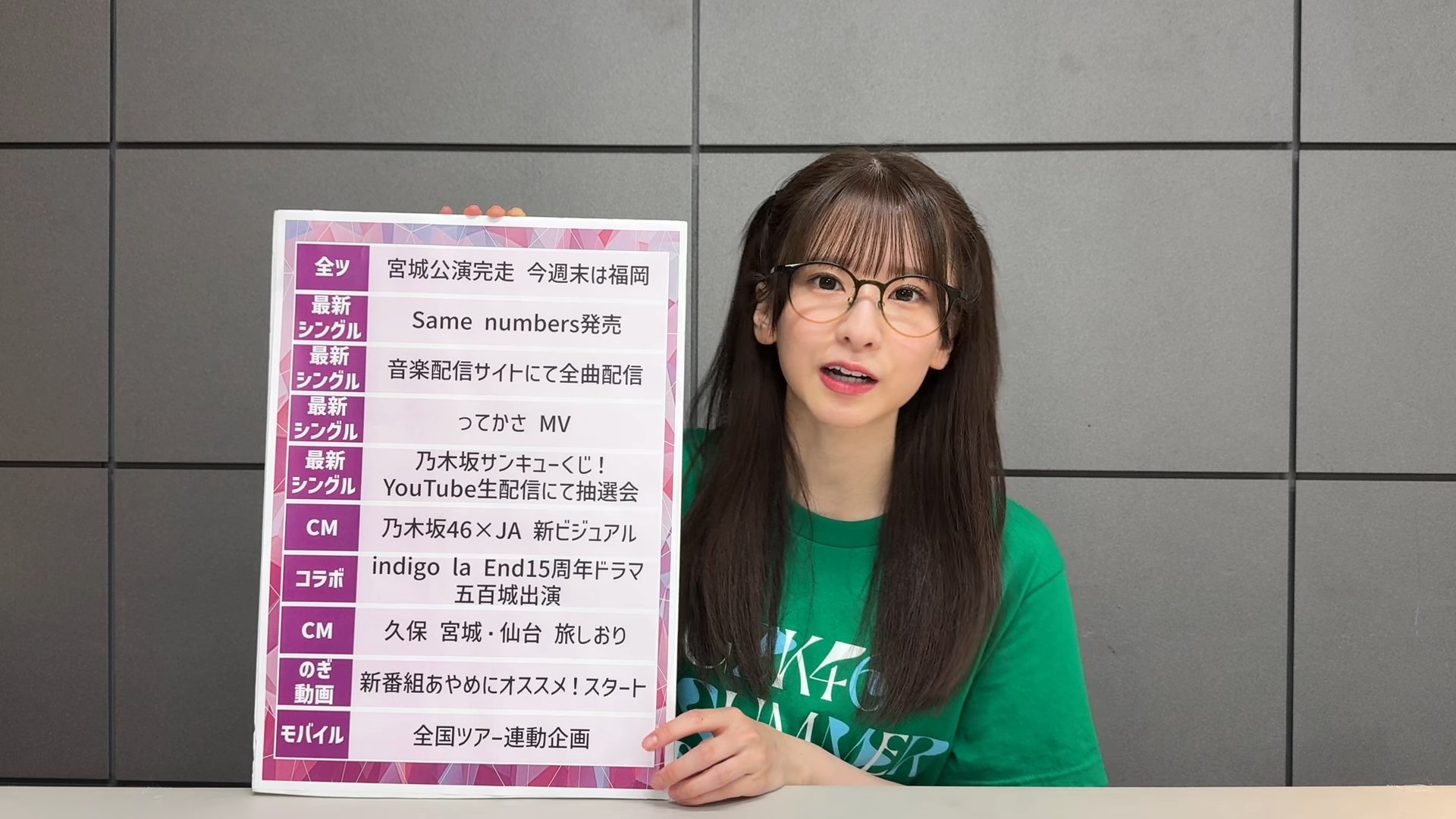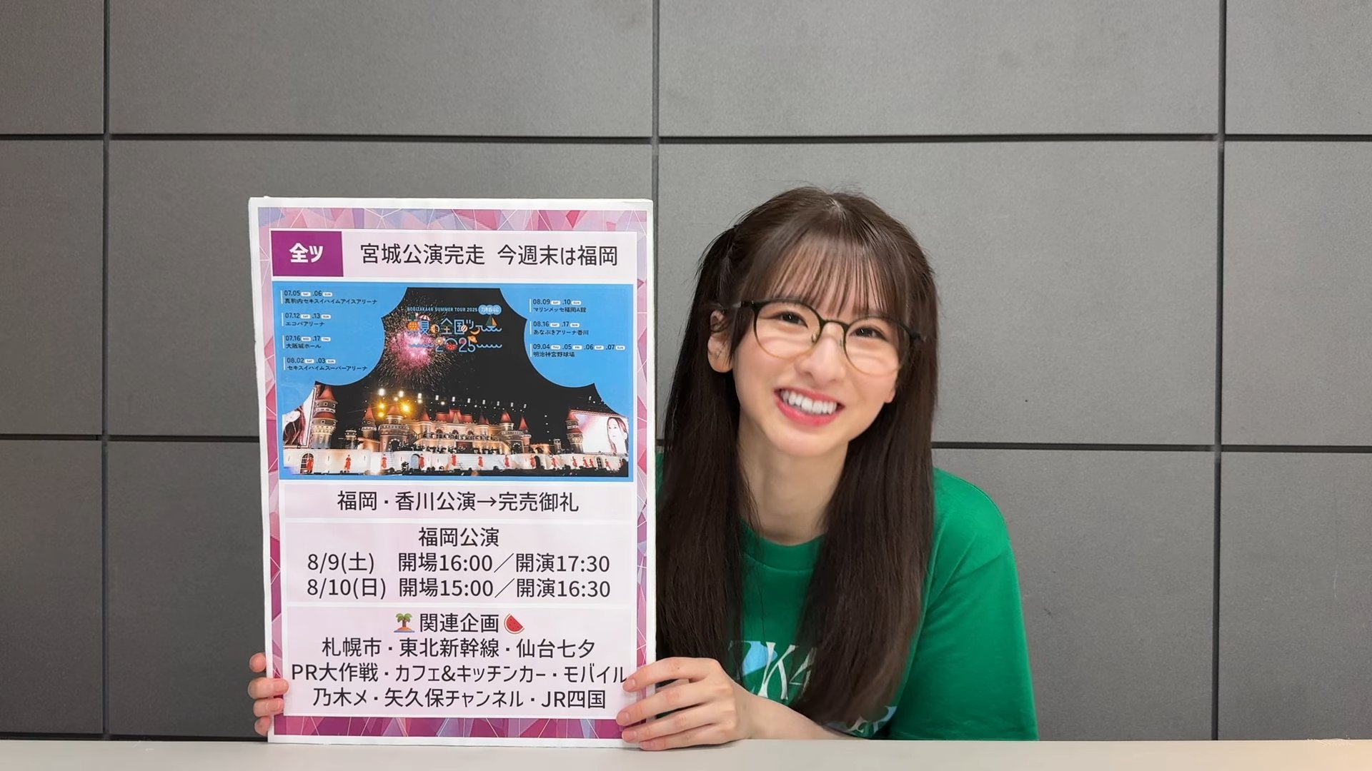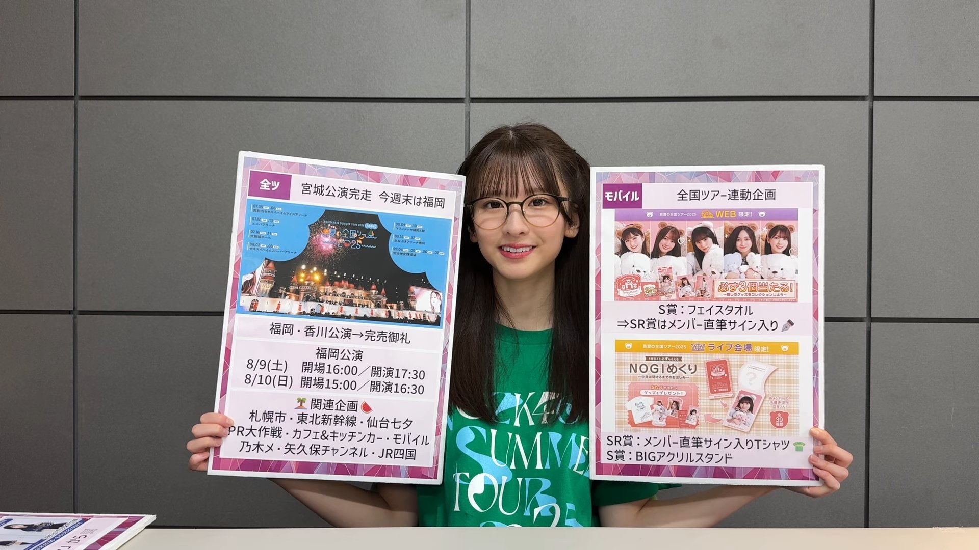 「週刊乃木坂ニュース」第39回では、乃木坂46の菅原咲月さんがMCを務め、以下の内容が発表・報告されました。今回の放送は、「真夏の全国ツアー2025」宮城公演が終了した直後に収録されたものです。