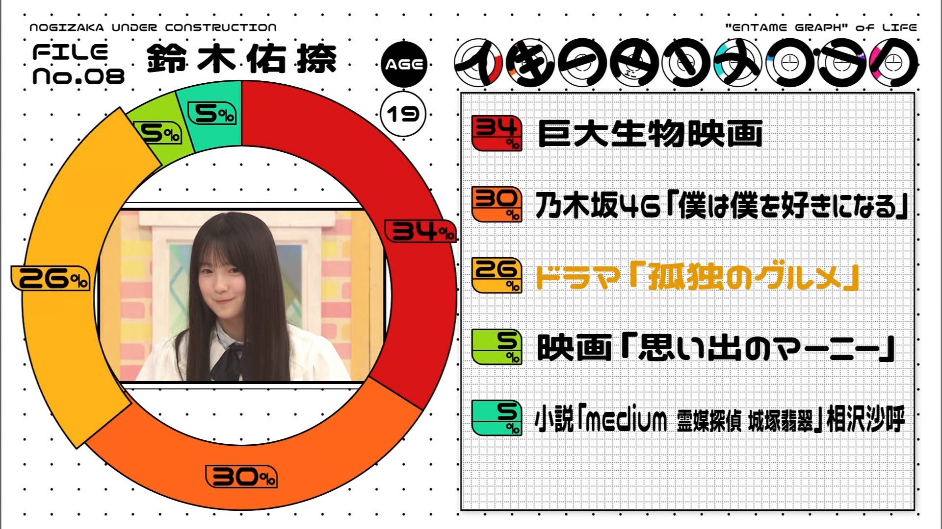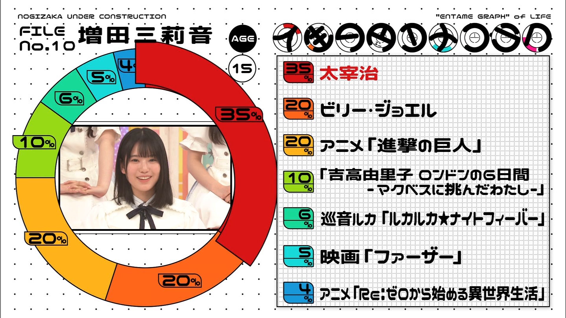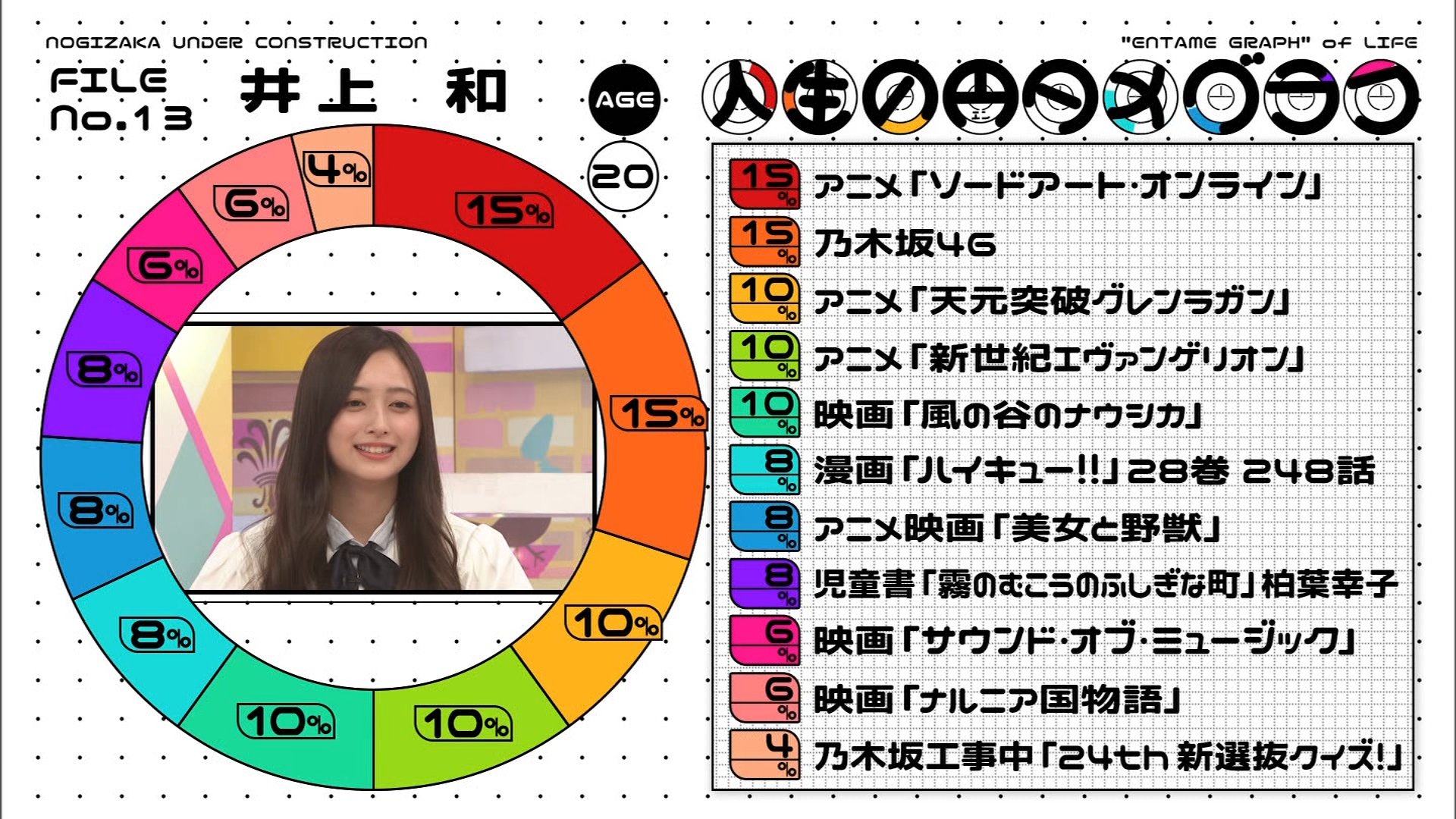 メンバーの人生に影響を与えたエンターテインメント作品を円グラフにして発表!