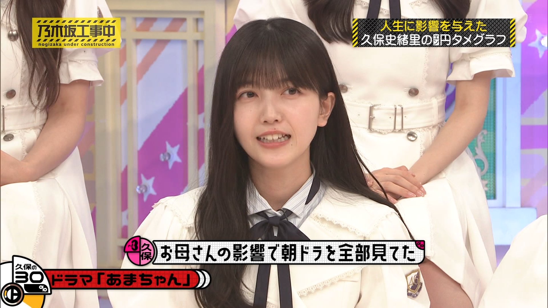 ◦ あまちゃん (30%):お母さんの影響で朝ドラを全て見ていた中で、初めて地元東北が舞台になった作品であったことや、アイドルを目指すストーリーにのめり込んだと語りました。当時は乃木坂に入る前でしたが、GMT47のオーディションを受けるという設定に共感し、橋本愛さん演じる「ユイちゃん」のパートを全て踊り、カラオケで「潮騒のメモリー」を歌っていたそうです。