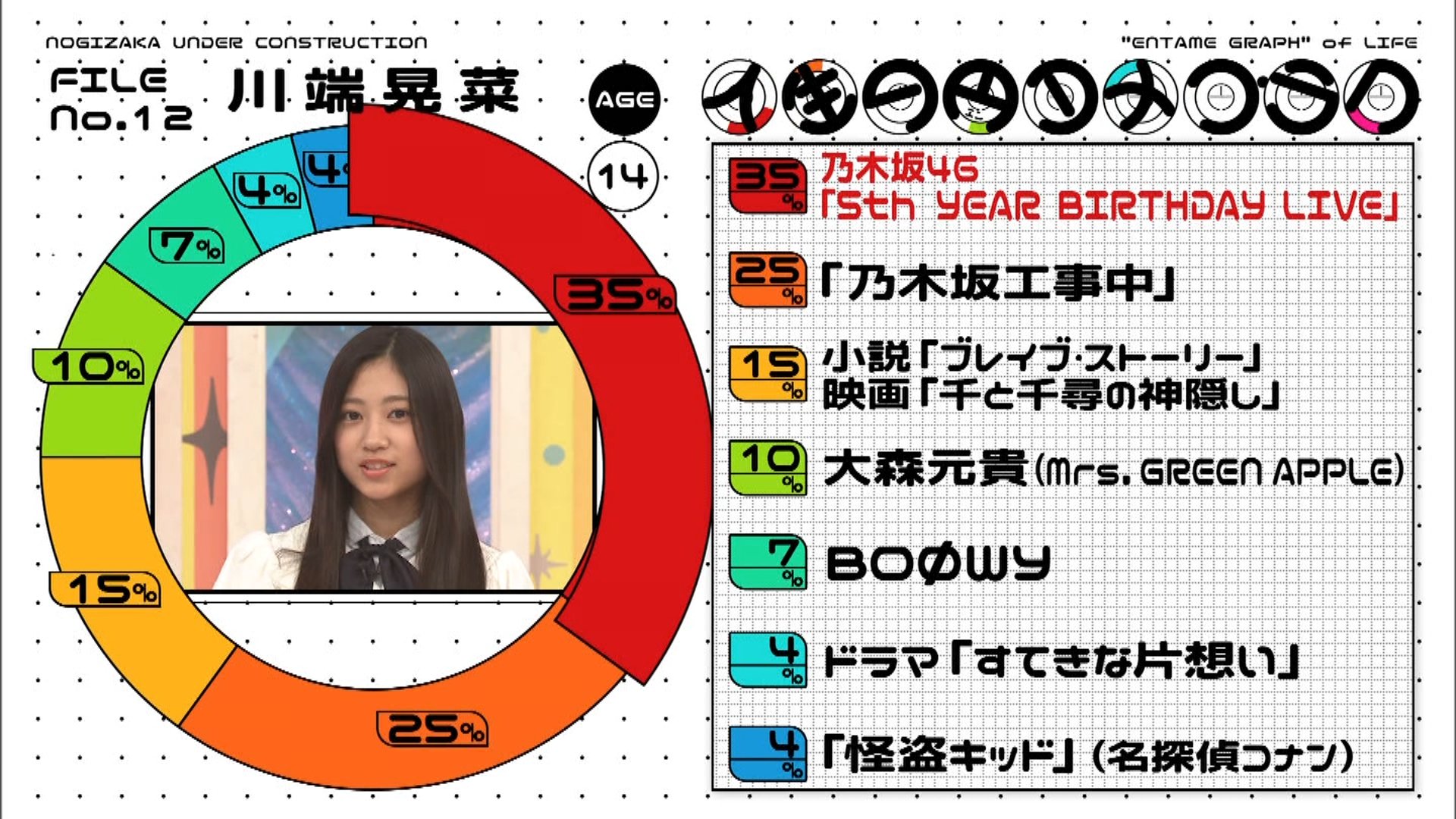 ◦ 乃木坂工事中 (25%):