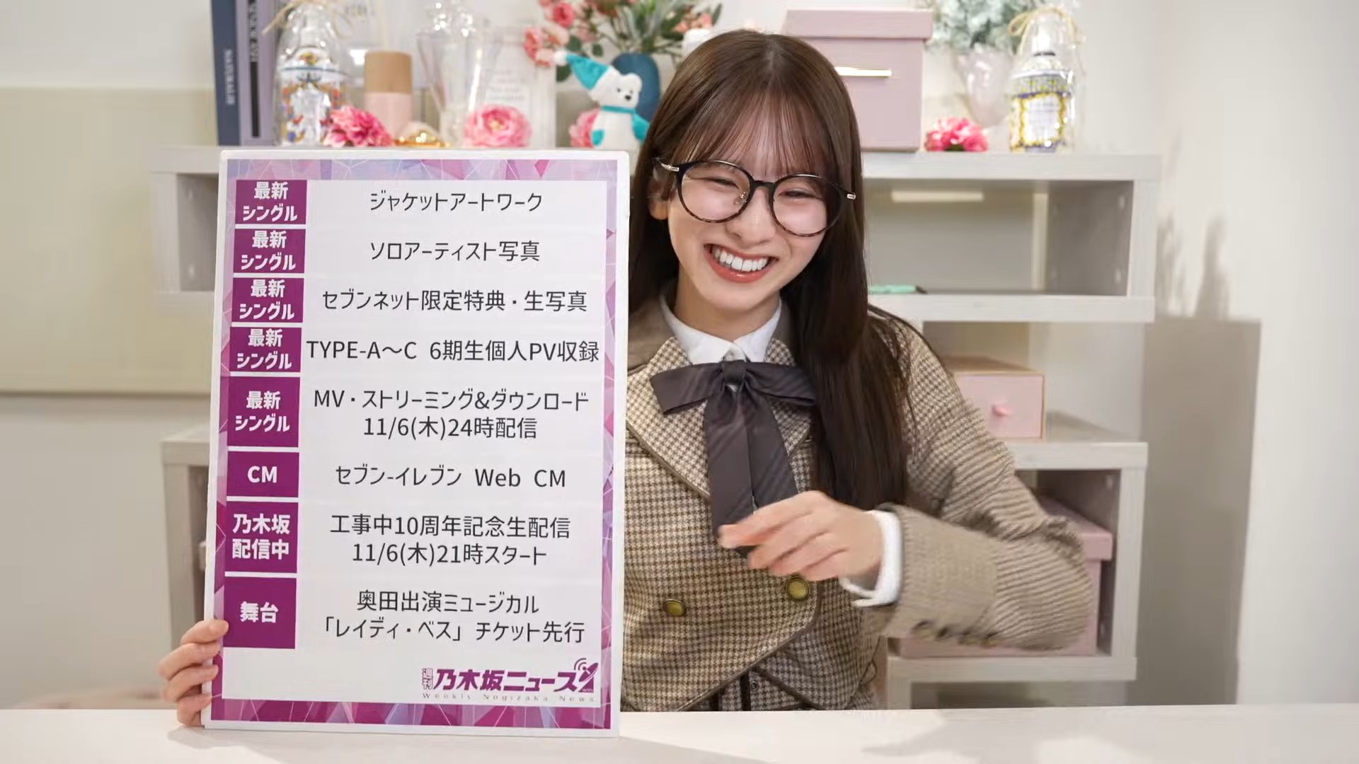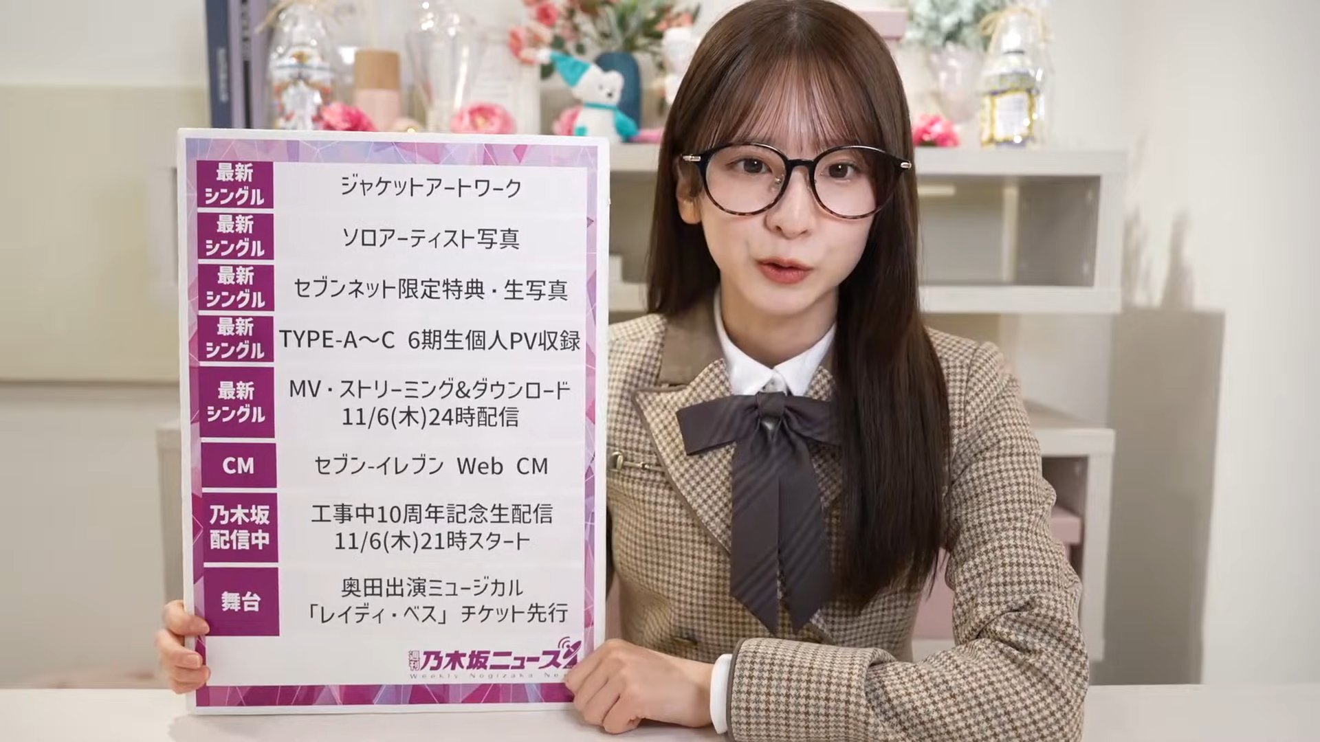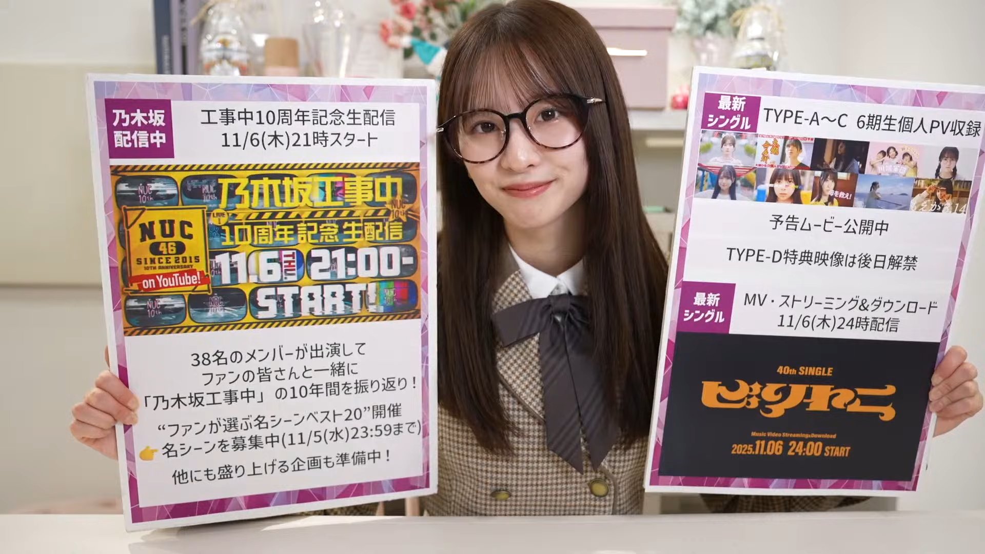 ◦ YouTubeチャンネル「乃木坂配信中」にて、11月6日(木)21時より約3時間の生配信が実施されます。