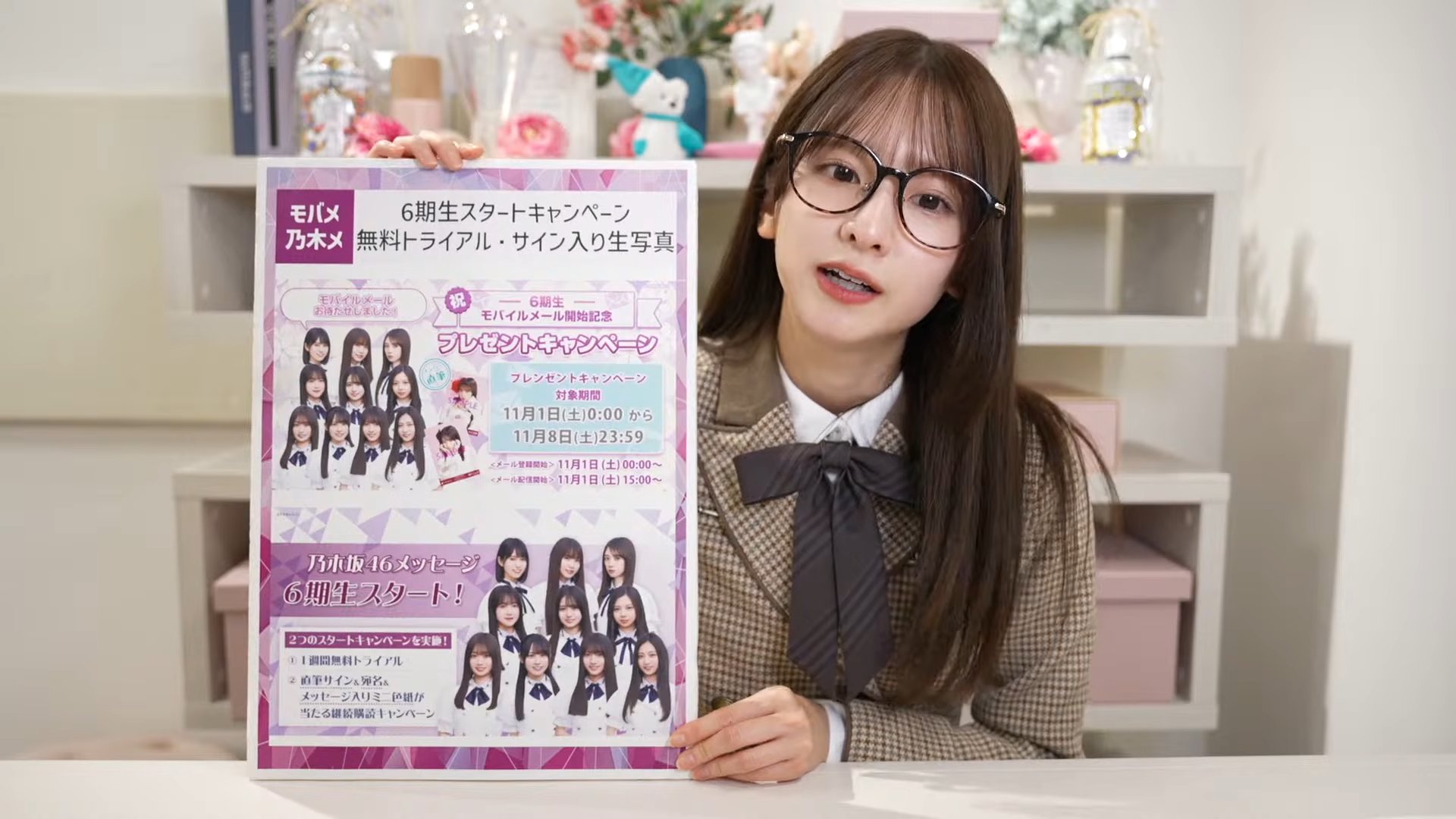 ◦ 6期生メールでは、11月8日まで登録した方の中から抽選で、直筆の意気込み入り限定生写真が当たるキャンペーンを実施中です。6期生メッセージでは、アプリ決済限定で1週間無料トライアルや、継続購読者向けの直筆サインとメッセージ入りミニ色紙が当たるキャンペーンを実施しています。