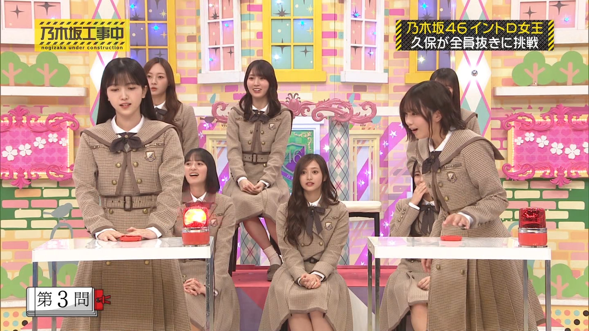 最初の挑戦は、久保が得意と公言してきた「乃木坂ソングマスター」ことイントロクイズ。6期生から同期の3期生まで、スタジオにいるメンバー14人全員との1対1対決に挑んだ。