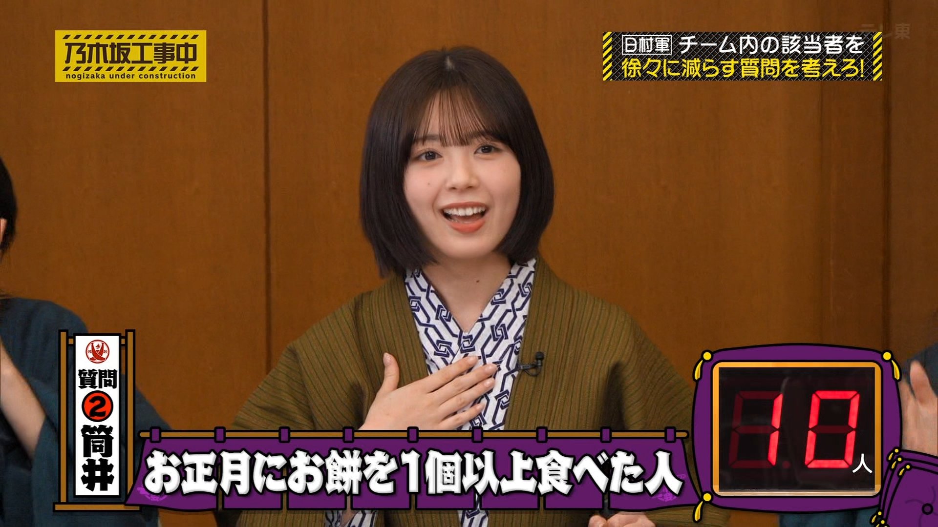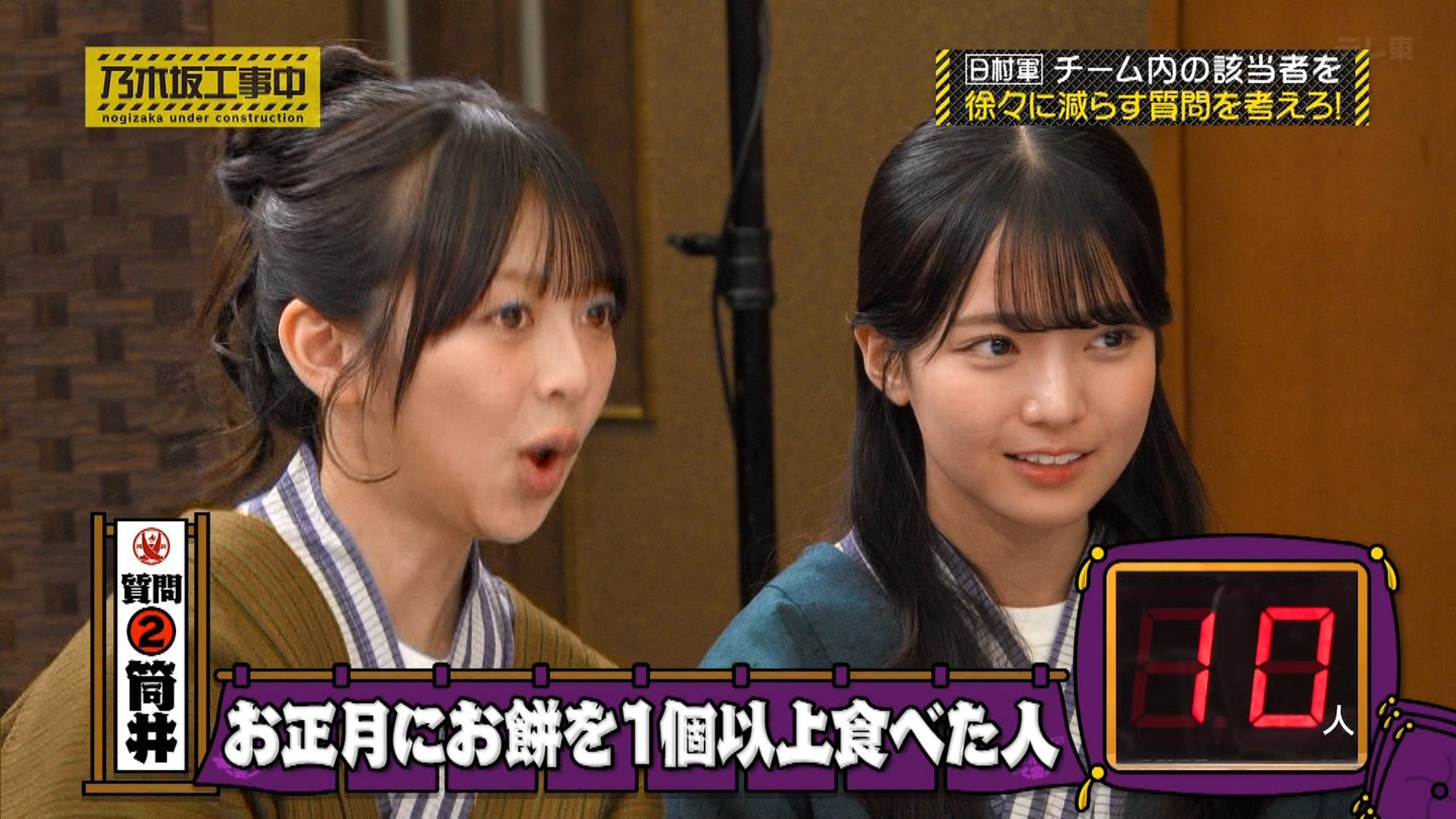 ◦ 金川紗耶:「正月三が日にお肉を食べた人」→ 16人(1人だけ食べていないメンバーがいたため、絶妙なスタート),。