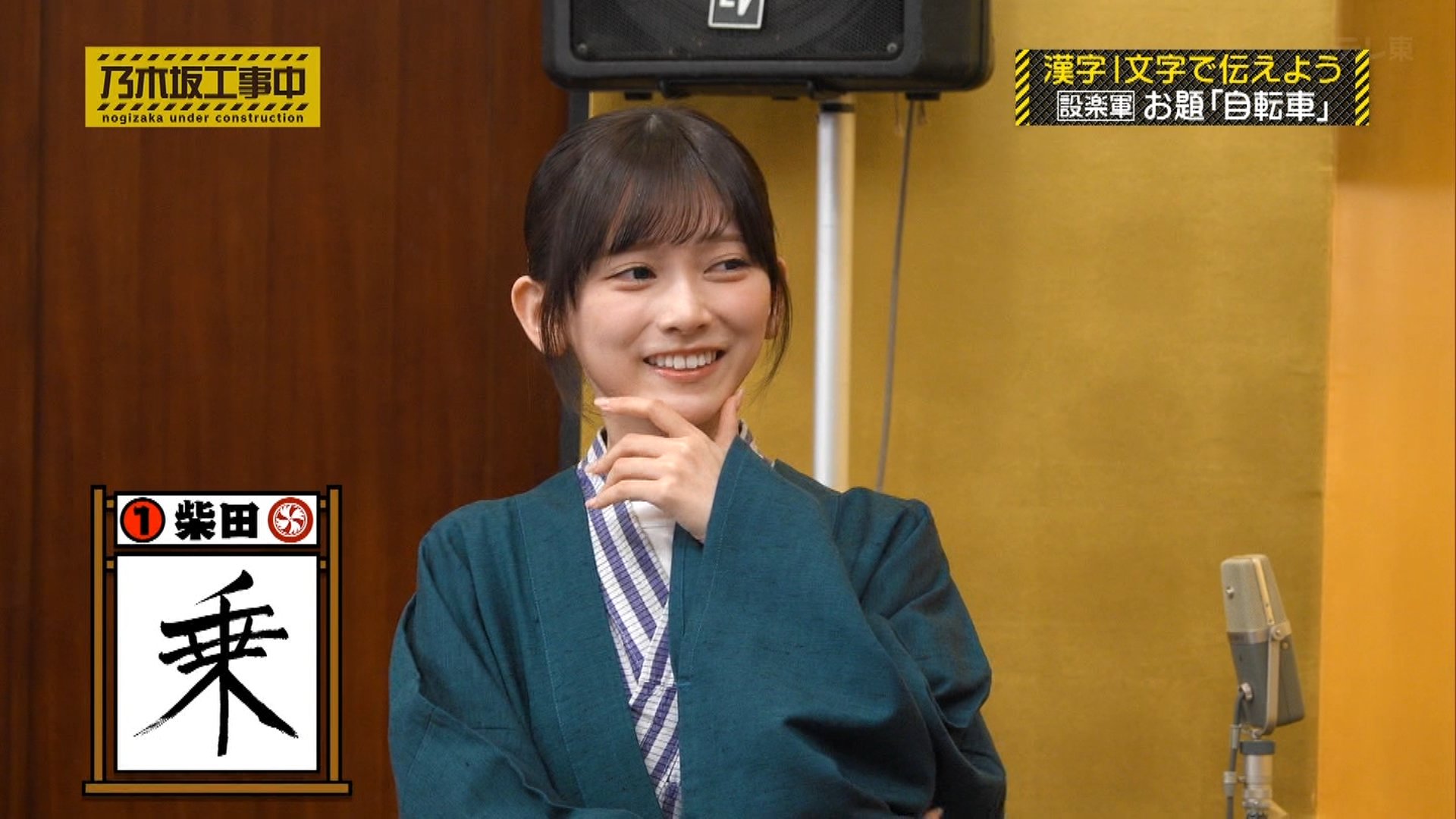 ◦ 2人目の小川彩が「二」と書くと、池田は「乗る」「二(輪)」から見事に「自転車」を正解させ、40ポイントを獲得しました。